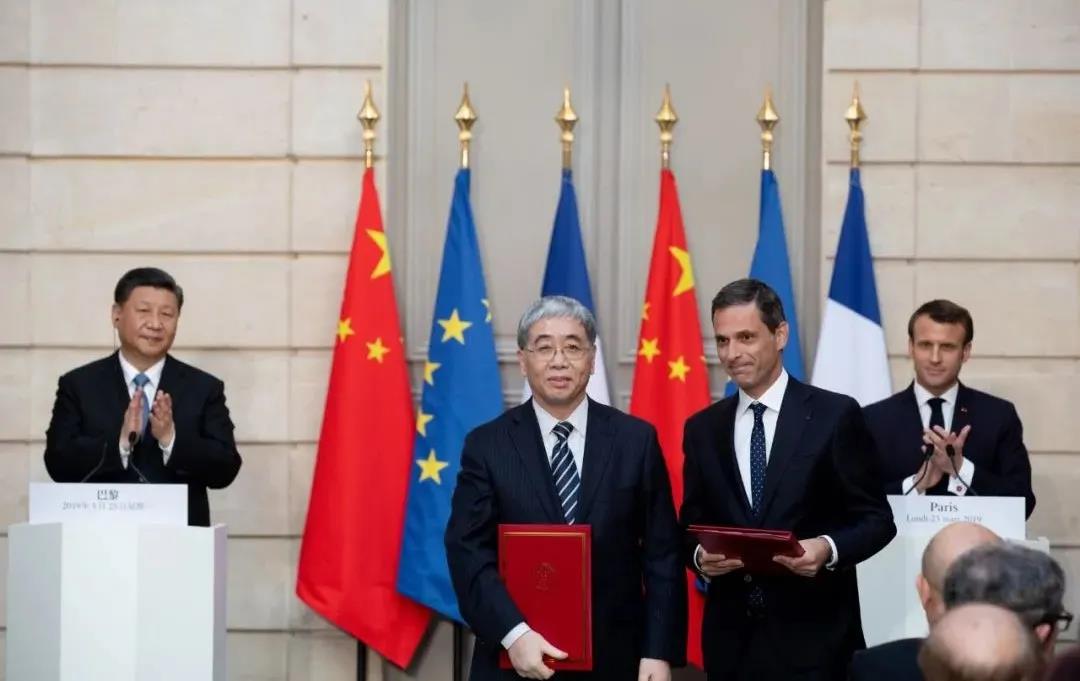 2019年3月,在中法建交55周年的背景下,兩國元首見證了中國船舶集團(tuán)董事長雷凡培、達(dá)飛集團(tuán)董事長兼首席執(zhí)行官魯?shù)婪颉に_德互相交換戰(zhàn)略合作框架協(xié)議暨5艘雙燃料動力、5艘常規(guī)動力共10艘15000TEU超大型集裝箱船建造合同。
