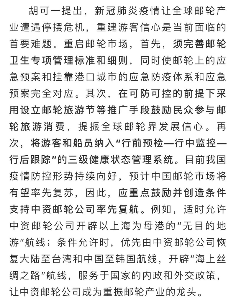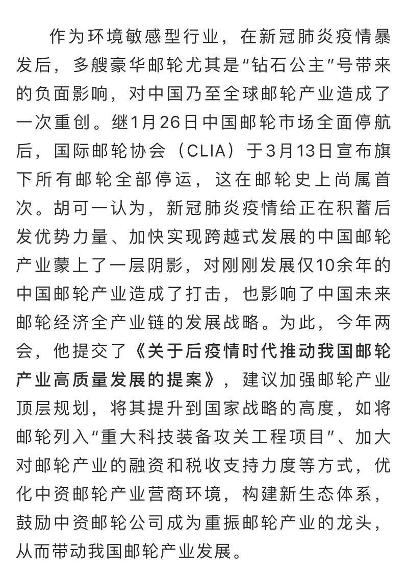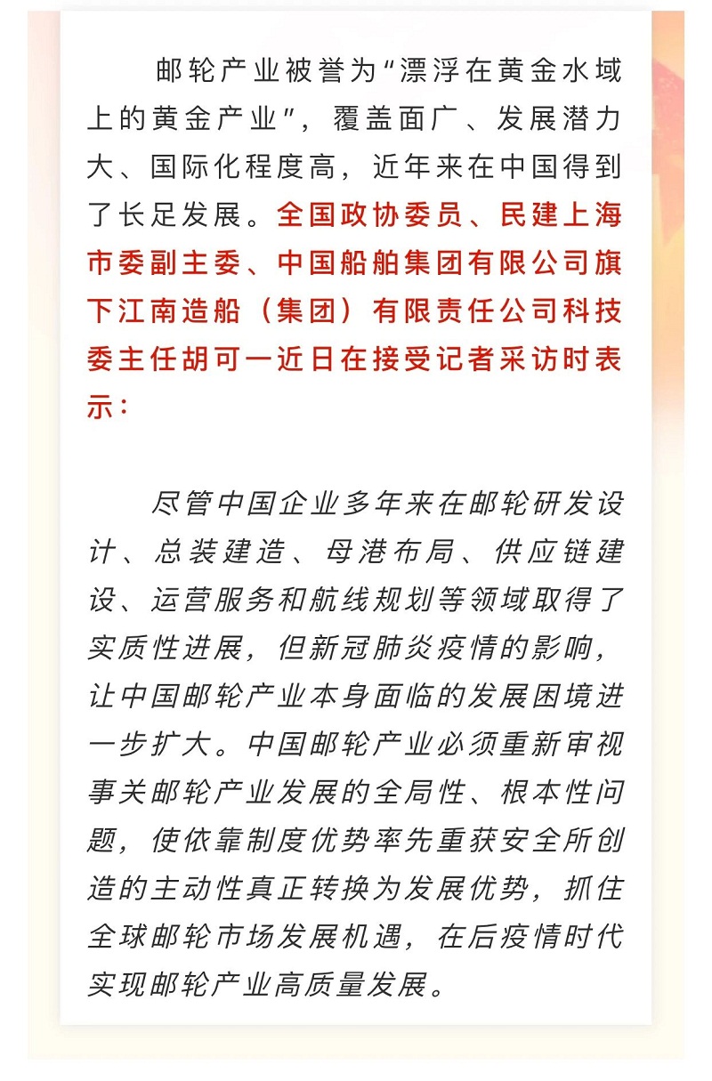 船舶看兩會| 全國政協委員胡可一:審視根本性問題,推動郵輪業高質量發展