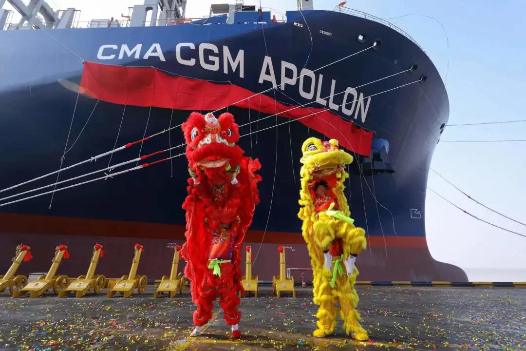 1月4日,新年第一個(gè)工作日。滬東中華聯(lián)合中船貿(mào)易為法國(guó)達(dá)飛海運(yùn)集團(tuán)建造的第四艘15000TEU超大型集裝箱船系列船“達(dá)飛·阿波羅”號(hào)在上海命名交付。
