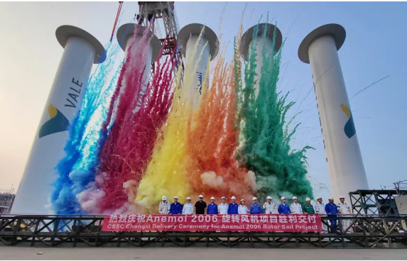 相較于此前安裝在32.5萬噸級Guaibamax型船上的轉子帆,此次交付的風力轉子推進系統受風面積提升至兩倍,據Anemoi測算,“Sohar Max”號安裝轉子帆后預計年節能效果可達6%,相當于減少3000噸二氧化碳當量的排放,節能減排效果顯著。