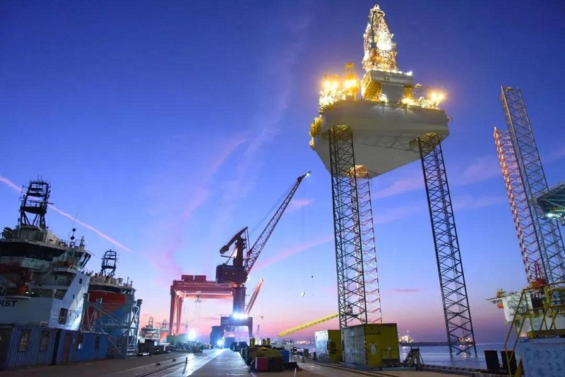 ????“ENERGY EDGE”號鉆井平臺是外高橋造船與山東海洋集團為深耕國家“一帶一路”沿線國家油氣勘探開發進行的第三個合作項目,將為卡塔爾氣體公司提供鉆井作業服務。該平臺從下塢至交付共歷時16個月,創造了外高橋造船自升式鉆井平臺船塢及碼頭的最短建造紀錄。(何寶新 王胤供稿)