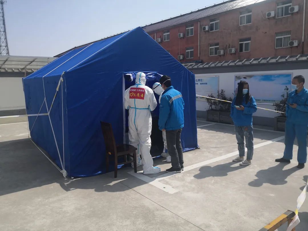 臨時黨支部和工作組的成立,把每個人都納入了組織,一些員工看到工作組成立后激動地表示,“終于找到組織了”。在他們的支持下,社區(qū)村居的核酸檢測由內部志愿者配合醫(yī)護人員完成,不用江南造船再派出志愿者到村居,減少了人員交叉,降低了感染風險。